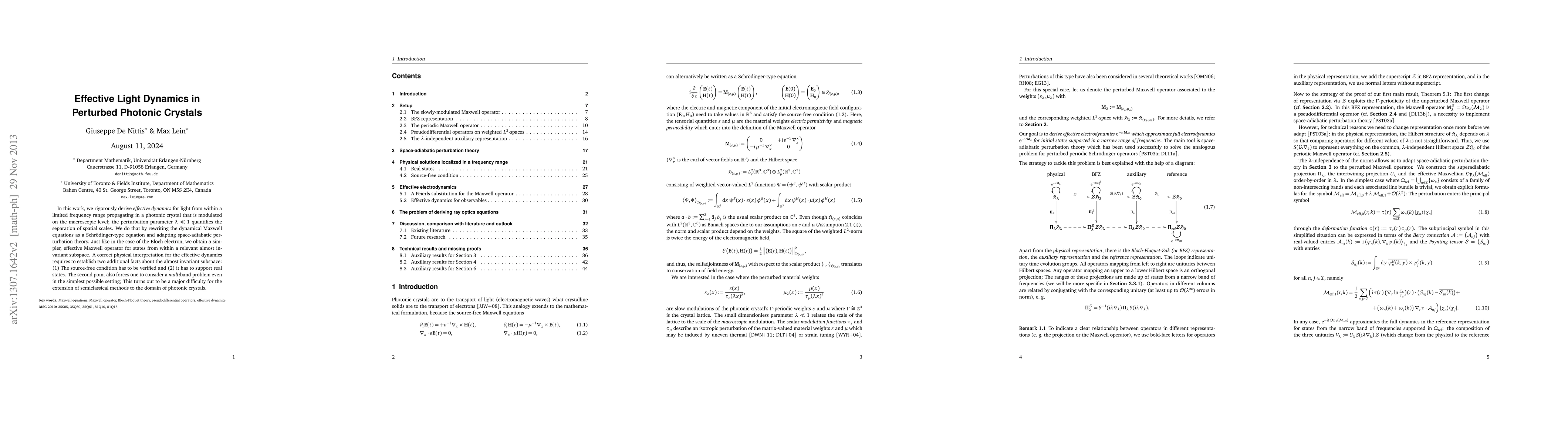 In this work, we rigorously derive effective dynamics for light from within a limited frequency range propagating in a photonic crystal that is modulated on the macroscopic level; the perturbation parameter $\lambda \ll 1$ quantifies the separation of spatial scales. We do that by rewriting the dynamical Maxwell equations as a Schr\"odinger-type equation and adapting space-adiabatic perturbation theory. Just like in the case of the Bloch electron, we obtain a simpler, effective Maxwell operator for states from within a relevant almost invariant subspace. A correct physical interpretation for the effective dynamics requires to establish two additional facts about the almost invariant subspace: (1) The source-free condition has to be verified and (2) it has to support real states. The second point also forces one to consider a multiband problem even in the simplest possible setting; This turns out to be a major difficulty for the extension of semiclassical methods to the domain of photonic crystals.