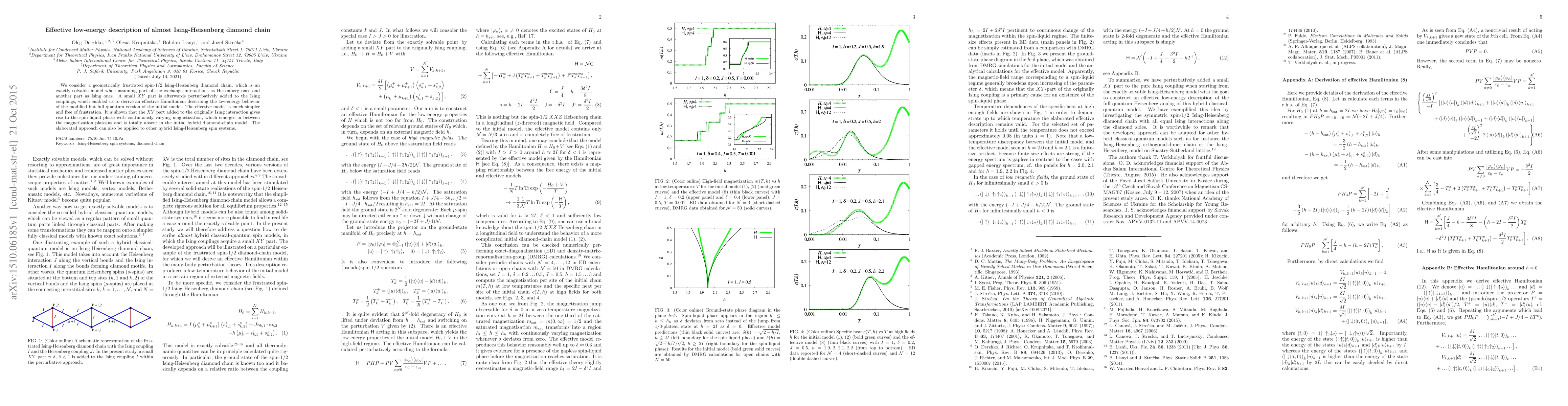 This paper develops an effective low-energy Hamiltonian for a spin-1/2 Ising-Heisenberg diamond chain by introducing a small perturbative XY part. The resulting model reveals a spin-liquid phase with variable magnetization, absent in the original hybrid model, and is applicable to other similar spin systems.