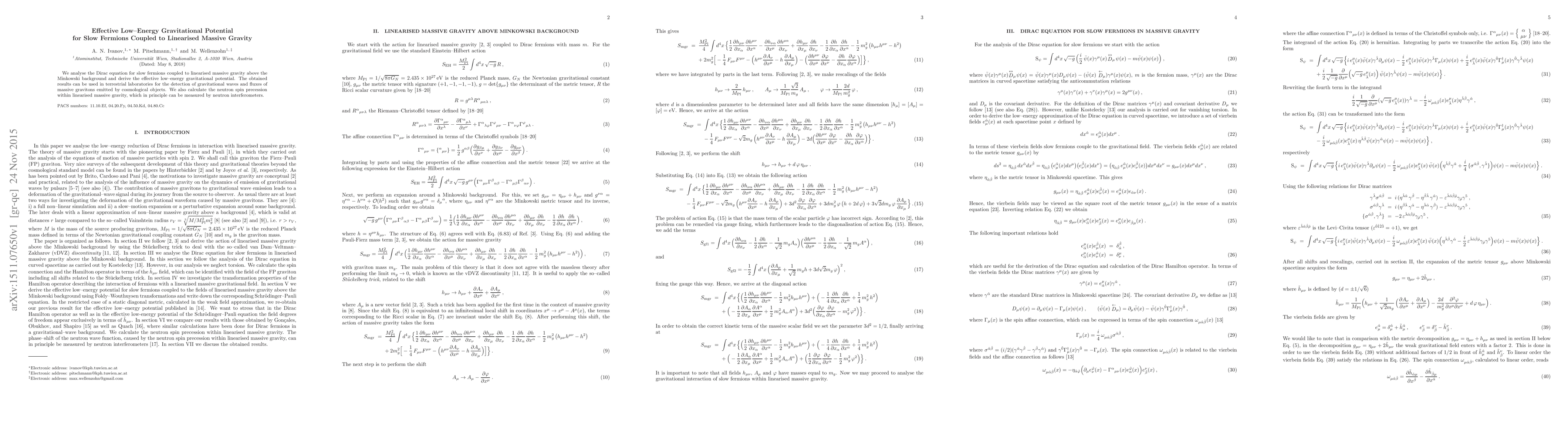 This paper derives the effective low-energy gravitational potential for slow fermions in the context of linearised massive gravity, and discusses its potential applications in detecting gravitational waves and massive graviton fluxes. Additionally, it calculates neutron spin precession in this framework, which could be measurable using neutron interferometers.