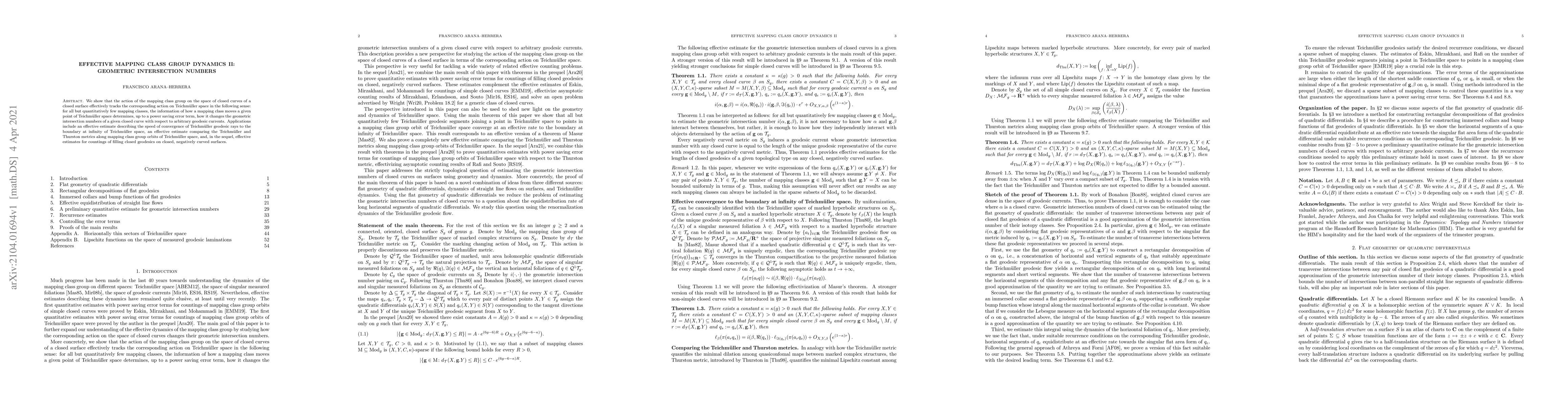 We show that the action of the mapping class group on the space of closed curves of a closed surface effectively tracks the corresponding action on Teichm\"uller space in the following sense: for all but quantitatively few mapping classes, the information of how a mapping class moves a given point of Teichm\"uller space determines, up to a power saving error term, how it changes the geometric intersection numbers of a given closed curve with respect to arbitrary geodesic currents. Applications include an effective estimate describing the speed of convergence of Teichm\"uller geodesic rays to the boundary at infinity of Teichm\"uller space, an effective estimate comparing the Teichm\"uller and Thurston metrics along mapping class group orbits of Teichm\"uller space, and, in the sequel, effective estimates for countings of filling closed geodesics on closed, negatively curved surfaces.