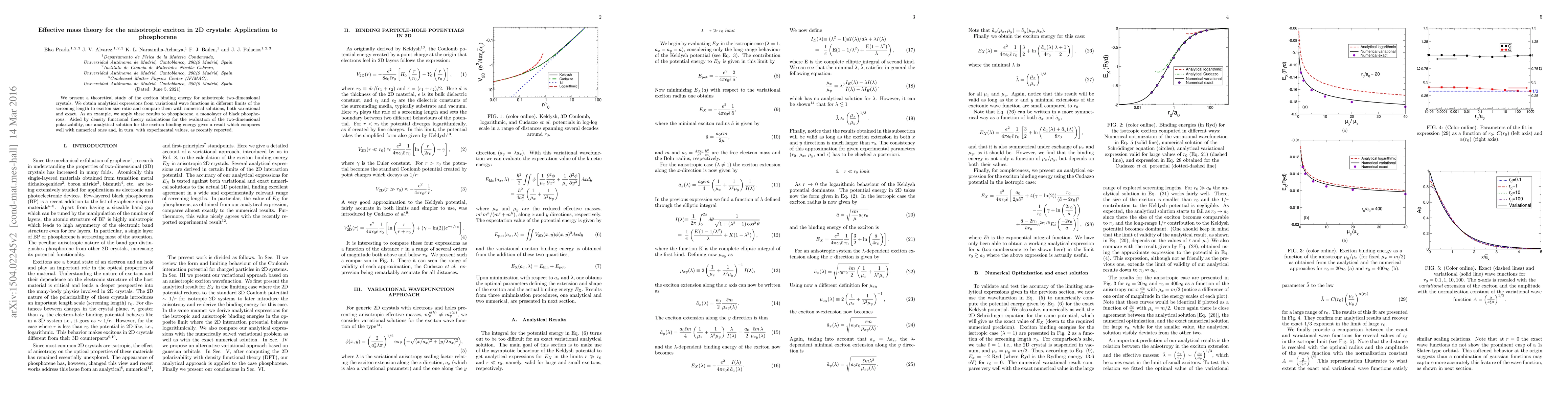 We present a theoretical study of the exciton binding energy for anisotropic two-dimensional crystals. We obtain analytical expressions from variational wave functions in different limits of the screening length to exciton size ratio and compare them with numerical solutions, both variational and exact. As an example, we apply these results to phosphorene, a monolayer of black phosphorous. Aided by density functional theory calculations for the evaluation of the two-dimensional polarizability, our analytical solution for the exciton binding energy gives a result which is very close to the numerical ones and, in turn, is comparable to the experimental value, as recently reported.