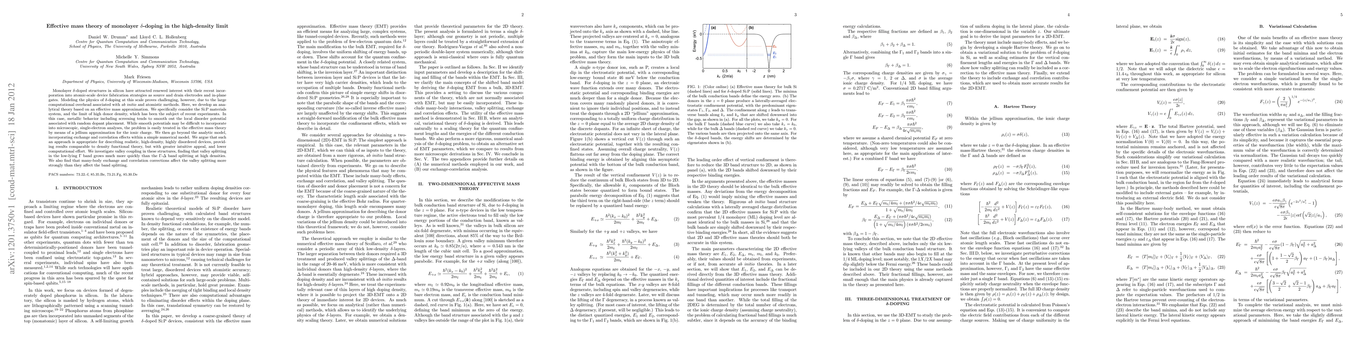 Researchers develop an analytical theory to model monolayer delta-doping in silicon at high donor density, finding that valley splitting grows more quickly with increasing density and is affected by many-body exchange and correlation corrections.