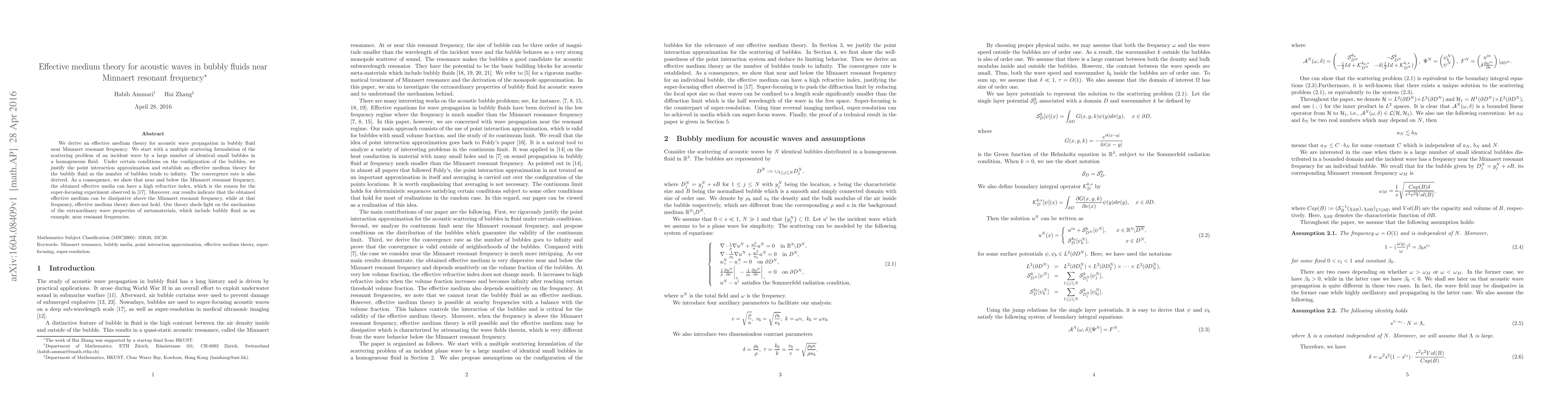 This research develops an effective medium theory for acoustic waves in bubbly fluids near the Minnaert resonant frequency, showing that these fluids can exhibit super-focusing and high refractive indices under certain conditions, while also becoming dissipative above this frequency.