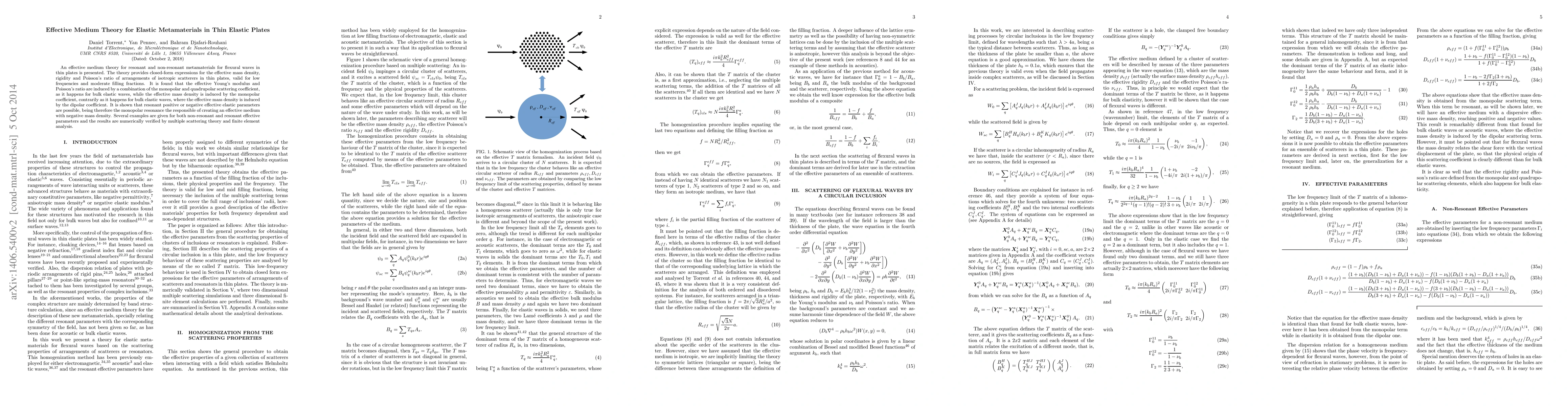 This paper presents an effective medium theory for elastic metamaterials in thin plates, providing closed-form expressions for effective parameters based on inclusion arrangement, filling fraction, and frequency. It reveals that negative mass density and Young's modulus arise from monopolar and combined monopolar-quadrupolar resonances, respectively, while dipolar resonances are negligible.