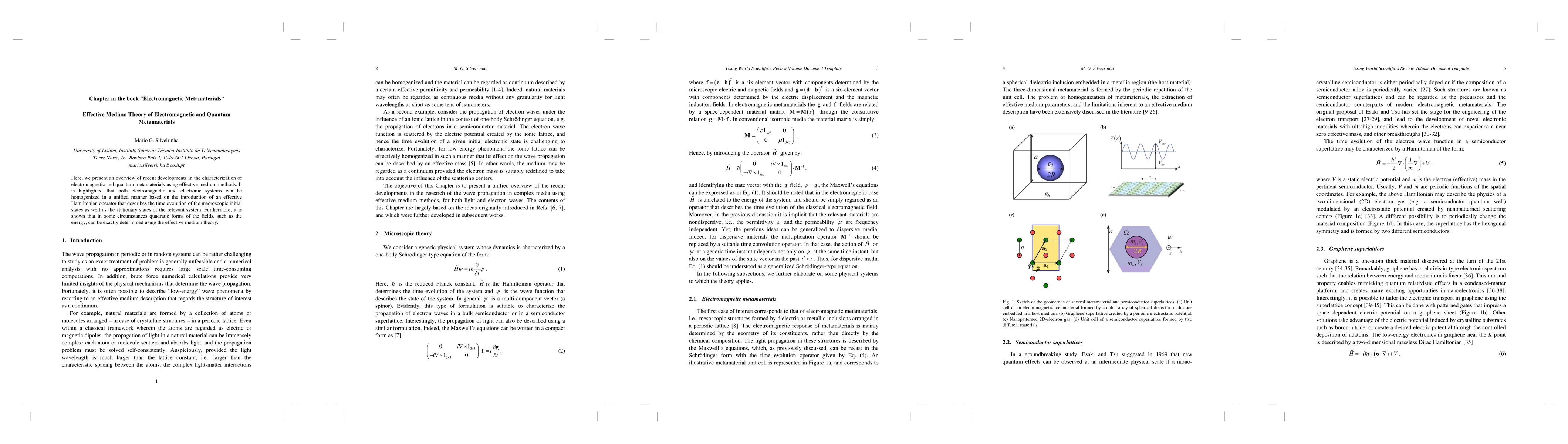 This paper reviews recent advancements in characterizing electromagnetic and quantum metamaterials through effective medium methods, emphasizing a unified approach using an effective Hamiltonian operator for both systems. It also demonstrates that effective medium theory can precisely determine quadratic field forms like energy in certain scenarios.