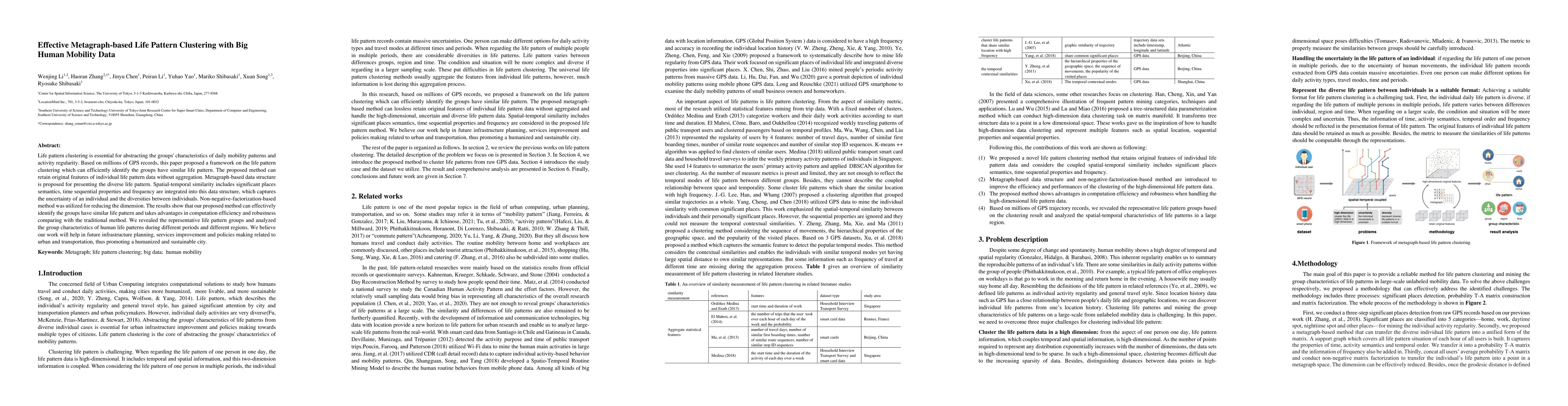This paper proposes a new method for life pattern clustering using metagraph-based data structure, which efficiently identifies groups with similar daily mobility patterns and activity regularity. The approach captures spatial-temporal similarity and uncertainty, offering advantages in computation efficiency and robustness over traditional methods.