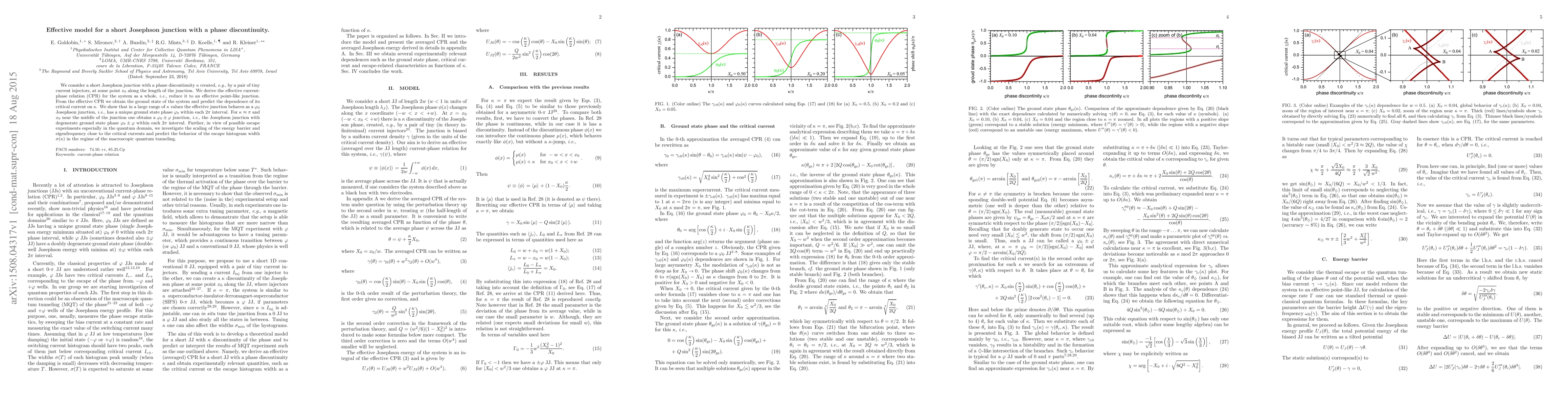 This paper derives an effective current-phase relation for a short Josephson junction with a phase discontinuity, showing its behavior as a $\varphi_0$ junction for most $\kappa$ values. It also predicts the critical current dependence on $\kappa$ and examines the energy barrier and eigenfrequency scaling near critical currents, particularly for escape experiments in the quantum domain.