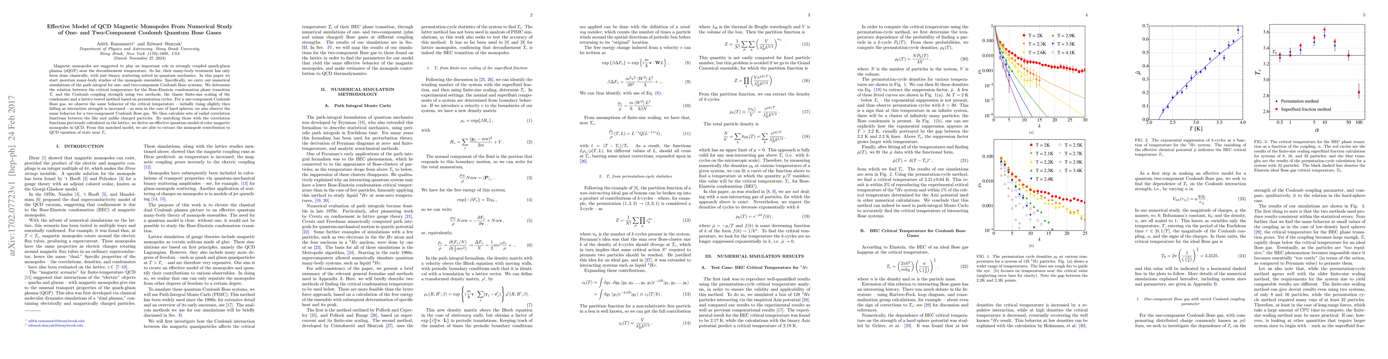 Magnetic monopoles are suggested to play an important role in strongly coupled quark-gluon plasma (sQGP) near the deconfinement temperature. So far, their many-body treatment has only been done classically, with just binary scattering solved in quantum mechanics. In this paper we start quantum many-body studies of the monopole ensembles. Specifically, we carry out numerical simulations of the path integral for one- and two-component Coulomb Bose systems. We determine the relation between the critical temperature for the Bose-Einstein condensation phase transition $T_\text{c}$ and the Coulomb coupling strength using two methods, the classic finite-size scaling of the condensate and a lattice-tested method based on permutation cycles. For a one-component Coulomb Bose gas, we observe the same behavior of the critical temperature -- initially rising slightly then falling as interaction strength is increased -- as seen in the case of hard spheres; we also observe the same behavior for a two-component Coulomb Bose gas. We then calculate sets of radial correlation functions between the like and unlike charged particles. By matching those with the correlation functions previously calculated on the lattice, we derive an effective quantum model of color magnetic monopoles in QCD. From this matched model, we are able to extract the monopole contribution to QCD equation of state near $T_\text{c}$.