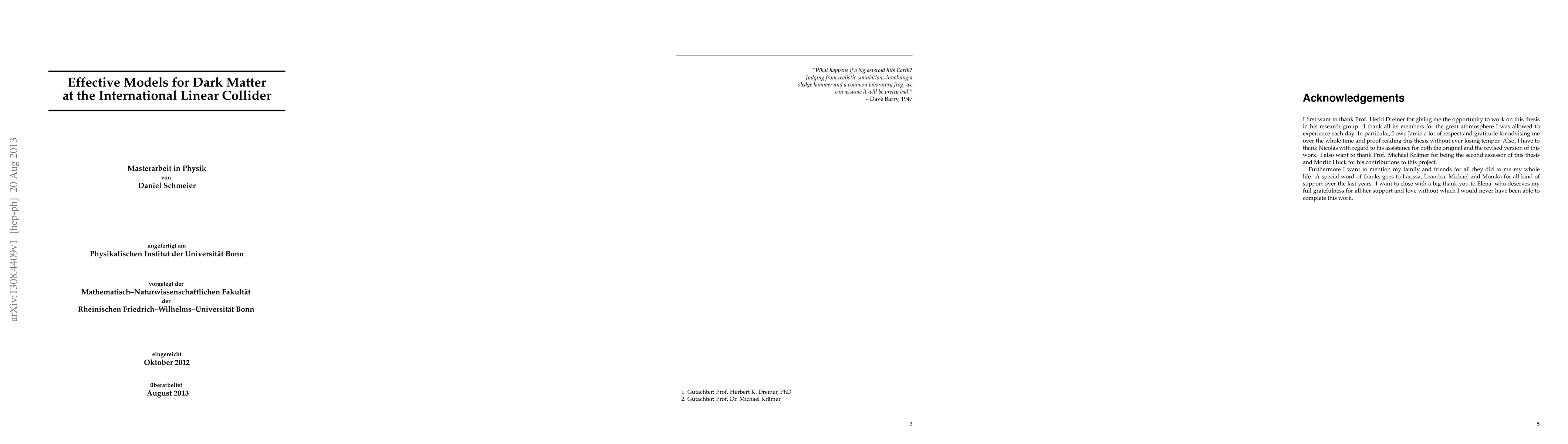 This paper explores effective field theories for WIMP dark matter interactions, focusing on the International Linear Collider's potential to detect WIMPs via single photon events. It demonstrates the ILC's unique capability to probe WIMP interactions for masses below 10 GeV, extending to up to 490 GeV under specific interaction conditions.