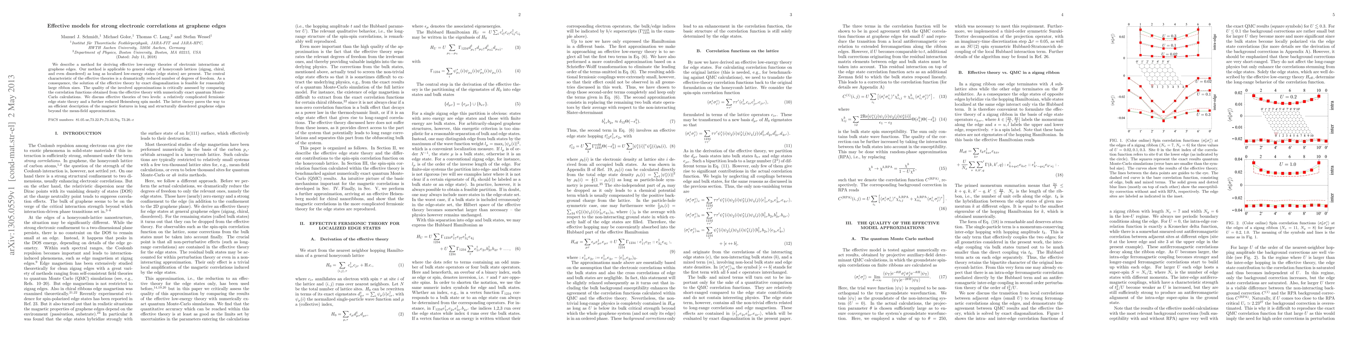 We describe a method for deriving effective low-energy theories of electronic interactions at graphene edges. Our method is applicable to general edges of honeycomb lattices (zigzag, chiral, and even disordered) as long as localized low-energy states (edge states) are present. The central characteristic of the effective theories is a dramatically reduced number of degrees of freedom. As a consequence, the solution of the effective theory by exact diagonalization is feasible for reasonably large ribbon sizes. The quality of the involved approximations is critically assessed by comparing the correlation functions obtained from the effective theory with numerically exact quantum Monte-Carlo calculations. We discuss effective theories of two levels: a relatively complicated fermionic edge state theory and a further reduced Heisenberg spin model. The latter theory paves the way to an efficient description of the magnetic features in long and structurally disordered graphene edges beyond the mean-field approximation.