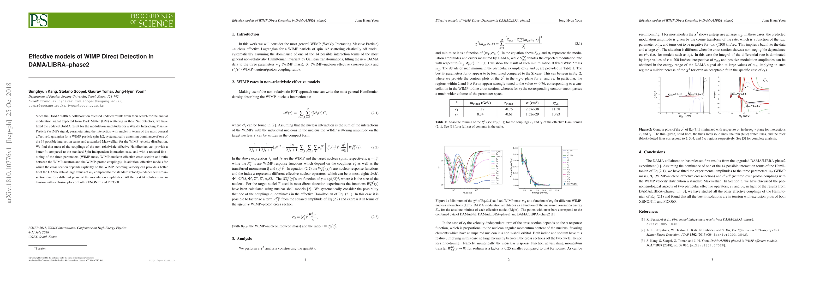 This study fits updated DAMA/LIBRA data for WIMP signals, finding that many non-relativistic effective Hamiltonian couplings provide a better fit than the standard Spin Independent interaction, with less fine-tuning of parameters. Effective models dependent on WIMP incoming velocity also fit large WIMP mass data better. However, all best-fit solutions conflict with XENON1T and PICO60 exclusion plots.