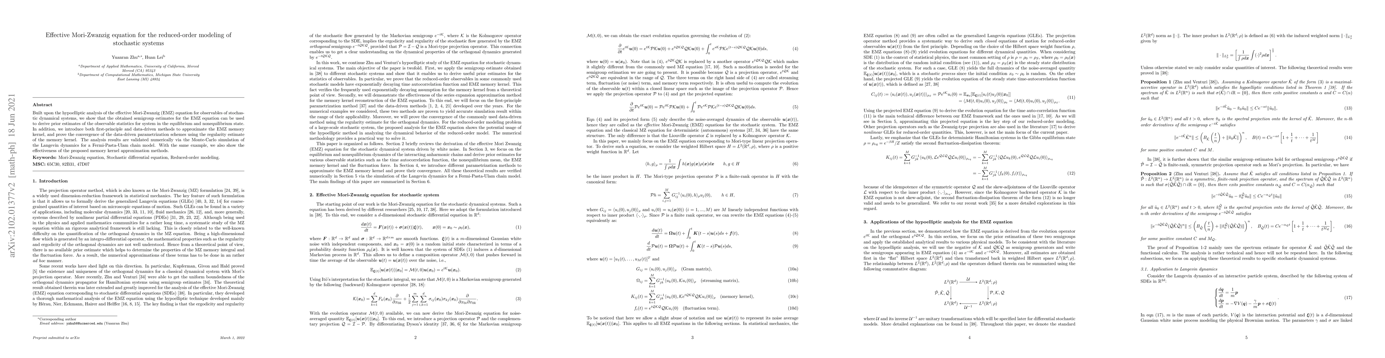 This paper introduces an effective Mori-Zwanzig equation for modeling stochastic systems, allowing for accurate estimation of observable statistics in both equilibrium and non-equilibrium states.