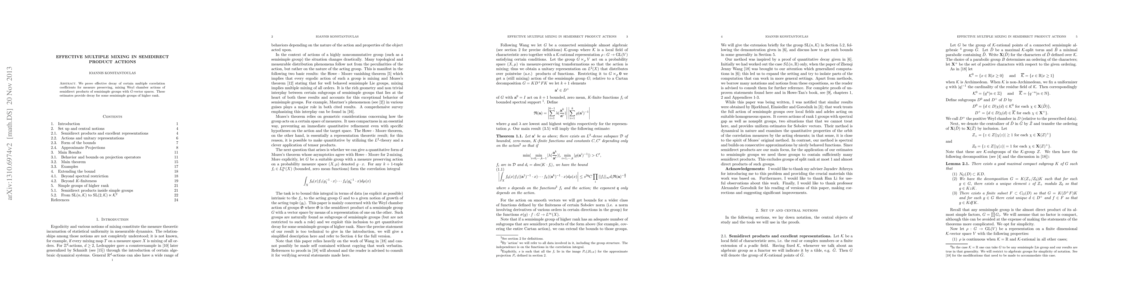 Researchers prove effective decay of multiple correlation coefficients for semidirect product actions of semisimple groups with vector spaces, providing new insights into mixing behavior.