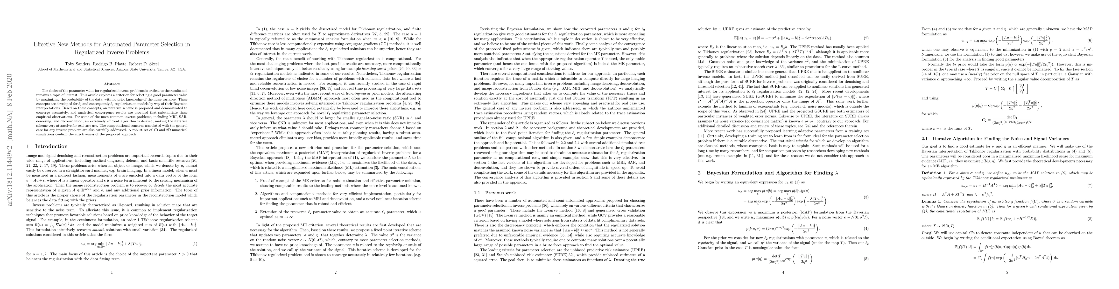 This paper proposes a novel criterion for selecting parameter values in regularized inverse problems by maximizing the likelihood of the data without prior knowledge of noise variance. It develops an iterative scheme with analytical convergence results, demonstrating its effectiveness for common inverse problems like MRI and SAR through efficient algorithms and robust numerical simulations.
