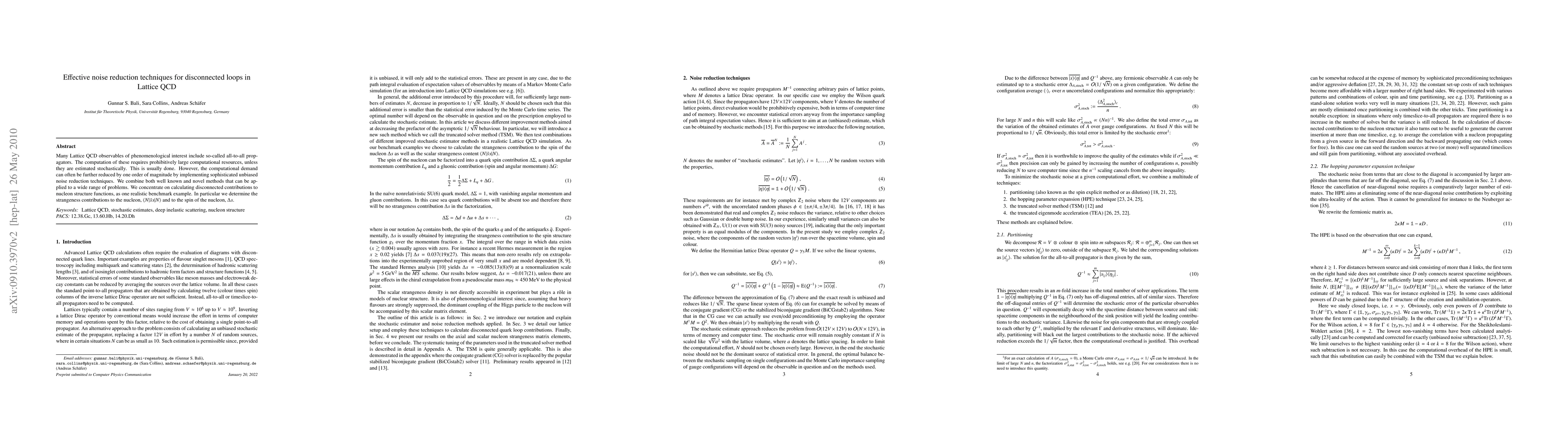 This paper explores advanced noise reduction techniques to significantly decrease computational demands for estimating all-to-all propagators in Lattice QCD, focusing on disconnected loops. The study combines established and new methods to benchmark the reduction in calculating strangeness contributions to nucleon structure functions.