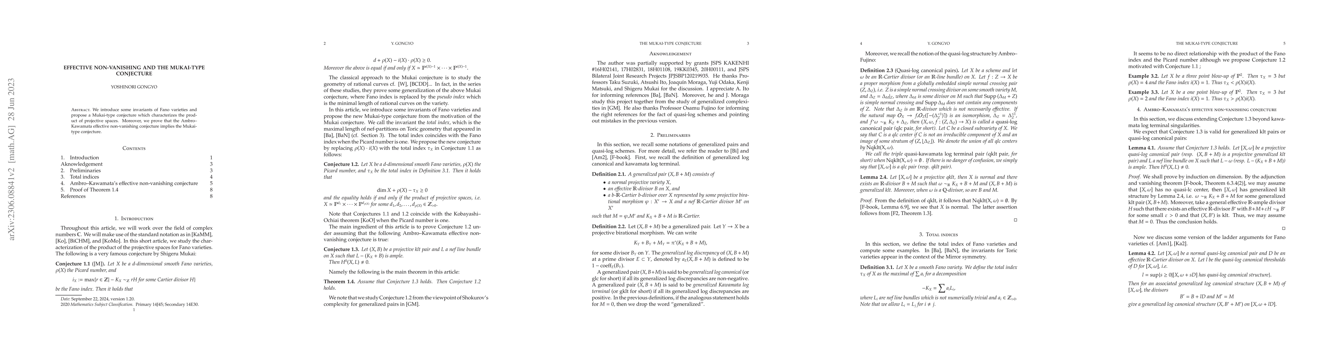 Summary: This paper introduces invariants of Fano varieties and proposes a Mukai-type conjecture to characterize projective space products. It also proves that the Ambro-Kawamata effective non-vanishing conjecture implies the proposed Mukai-type conjecture.
