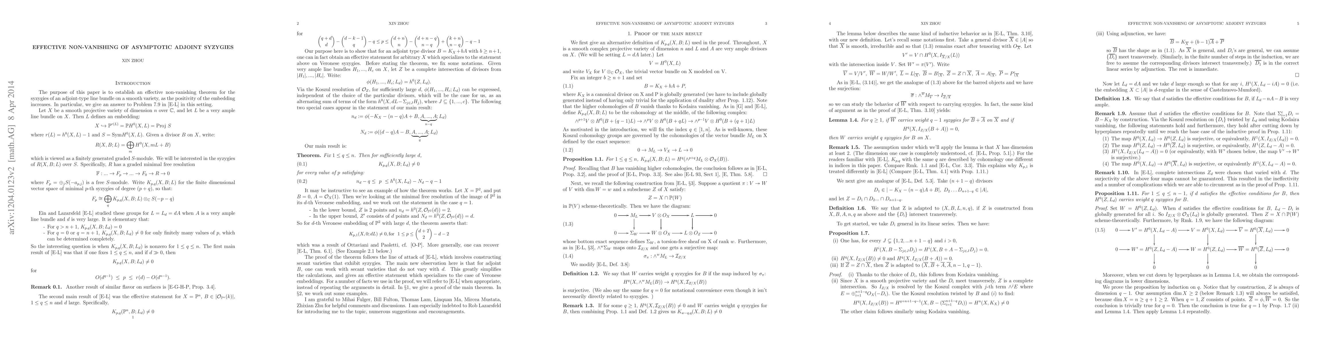 This paper establishes an effective non-vanishing theorem for syzygies of adjoint-type line bundles on smooth varieties as positivity conditions increase. It provides an effective statement for adjoint divisors $B = K_X + bA$ with $b \geq n+1$, extending results from Ein and Lazarsfeld's work on asymptotic syzygies.