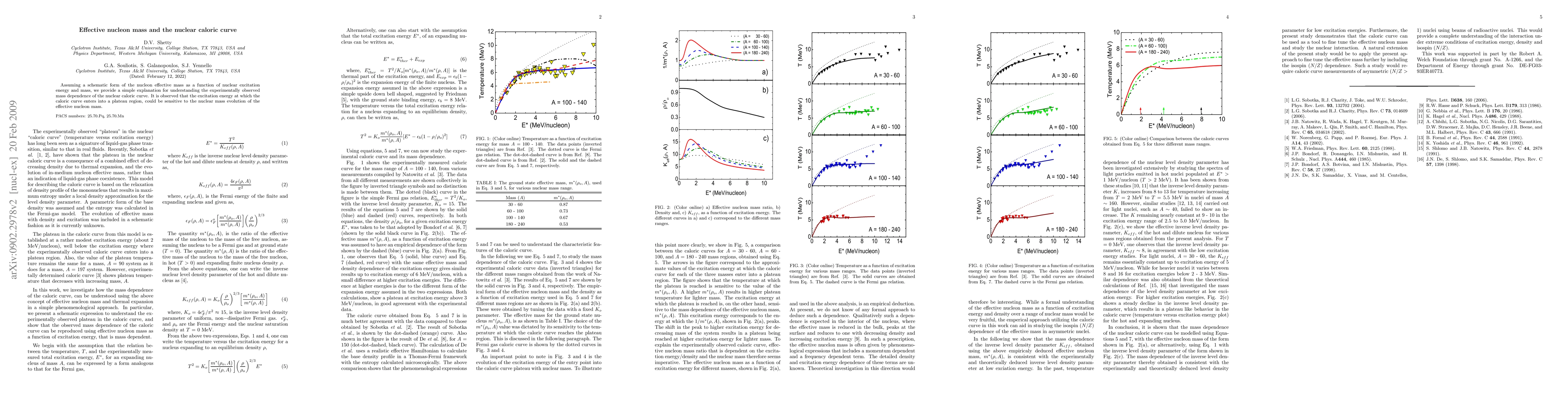 This paper explains the mass dependence of the nuclear caloric curve through a schematic model of the nucleon effective mass as a function of nuclear excitation energy and mass, showing that the plateau region's onset is influenced by the nuclear mass evolution of the effective nucleon mass.