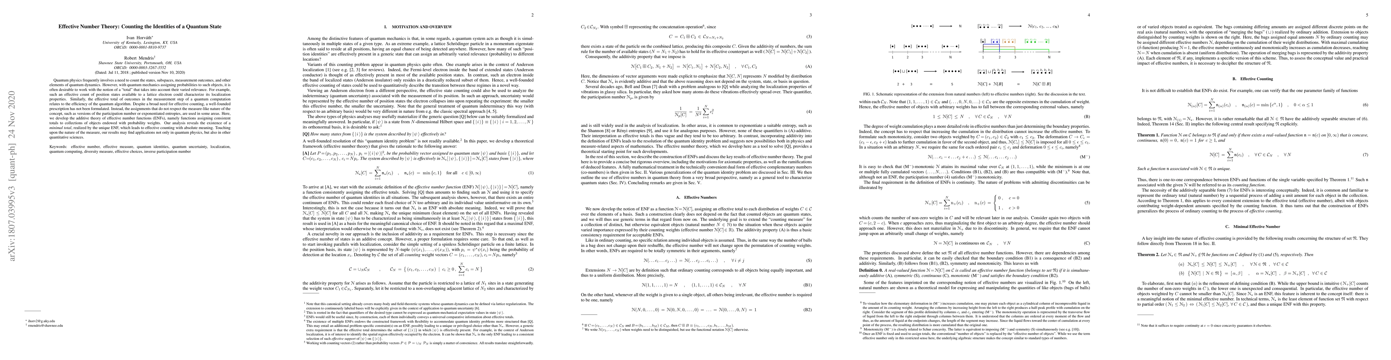Quantum physics frequently involves a need to count the states, subspaces, measurement outcomes, and other elements of quantum dynamics. However, with quantum mechanics assigning probabilities to such objects, it is often desirable to work with the notion of a "total" that takes into account their varied relevance. For example, such an effective count of position states available to a lattice electron could characterize its localization properties. Similarly, the effective total of outcomes in the measurement step of a quantum computation relates to the efficiency of the quantum algorithm. Despite a broad need for effective counting, a well-founded prescription has not been formulated. Instead, the assignments that do not respect the measure-like nature of the concept, such as versions of the participation number or exponentiated entropies, are used in some areas. Here, we develop the additive theory of effective number functions (ENFs), namely functions assigning consistent totals to collections of objects endowed with probability weights. Our analysis reveals the existence of a minimal total, realized by the unique ENF, which leads to effective counting with absolute meaning. Touching upon the nature of the measure, our results may find applications not only in quantum physics, but also in other quantitative sciences.