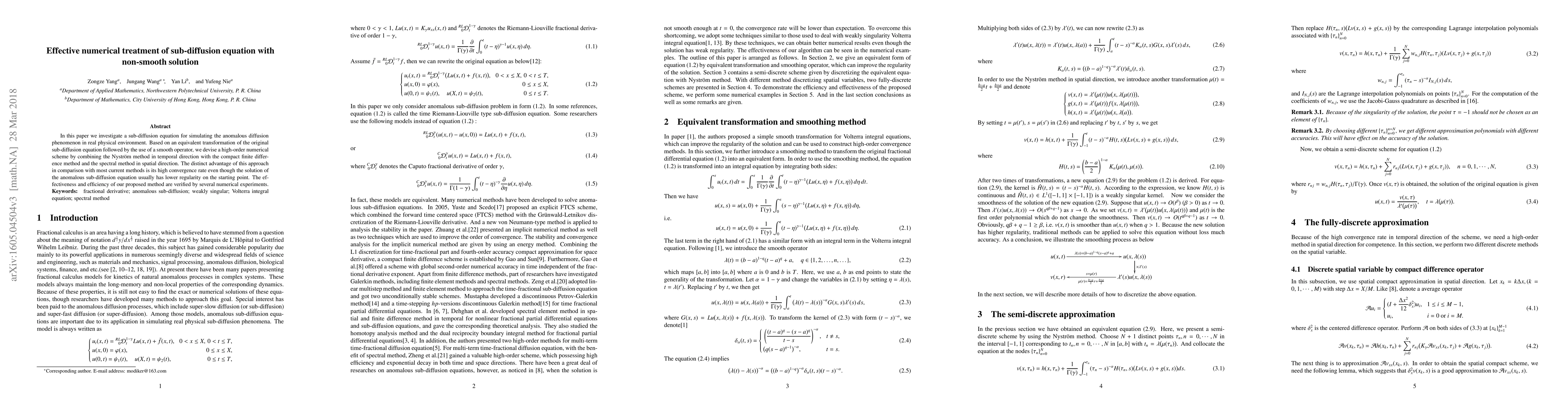 In this paper we investigate a sub-diffusion equation for simulating the anomalous diffusion phenomenon in real physical environment. Based on an equivalent transformation of the original sub-diffusion equation followed by the use of a smooth operator, we devise a high-order numerical scheme by combining the Nystrom method in temporal direction with the compact finite difference method and the spectral method in spatial direction. The distinct advantage of this approach in comparison with most current methods is its high convergence rate even though the solution of the anomalous sub-diffusion equation usually has lower regularity on the starting point. The effectiveness and efficiency of our proposed method are verified by several numerical experiments.