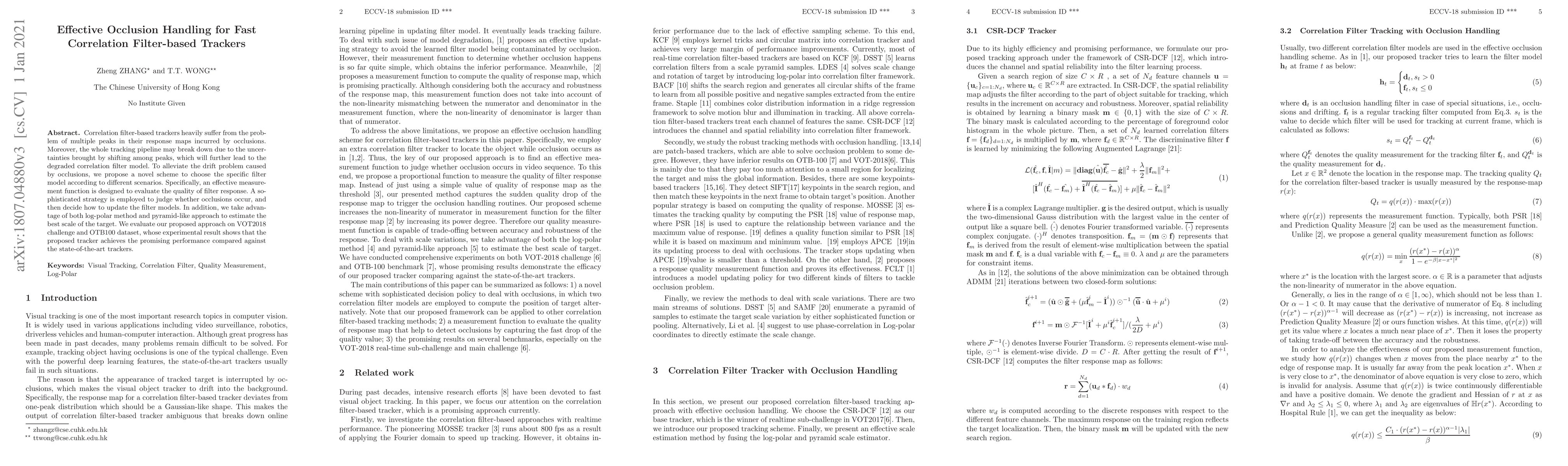 A new tracker design alleviates occlusion issues in correlation filter-based trackers by dynamically choosing the best filter model based on scenario-specific conditions. Experimental results show promising performance compared to state-of-the-art trackers.