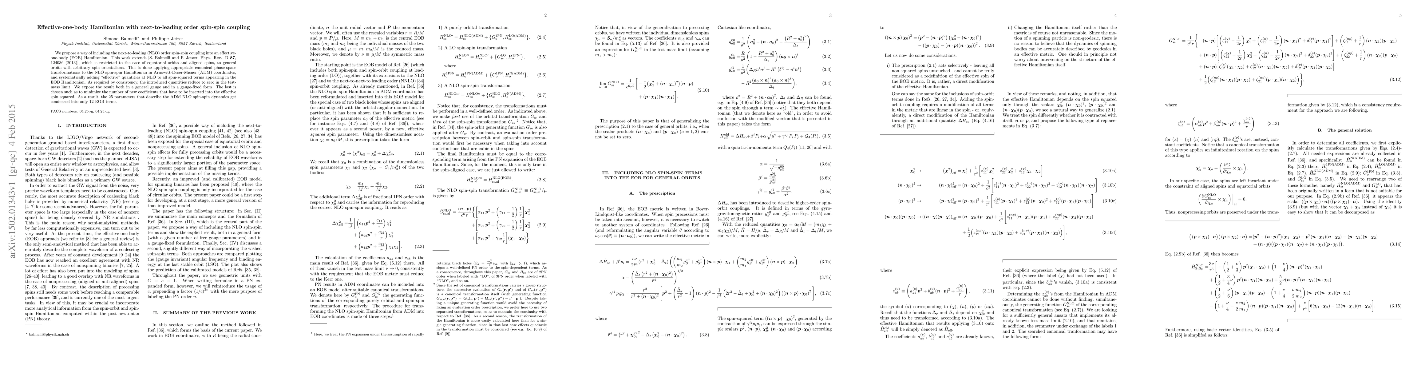 This paper proposes an extension of the effective-one-body (EOB) Hamiltonian to include next-to-leading order (NLO) spin-spin coupling, applicable to general orbits with arbitrary spin orientations. The method condenses 25 ADM parameters into 12 EOB terms, simplifying the dynamics of spinning compact binaries.