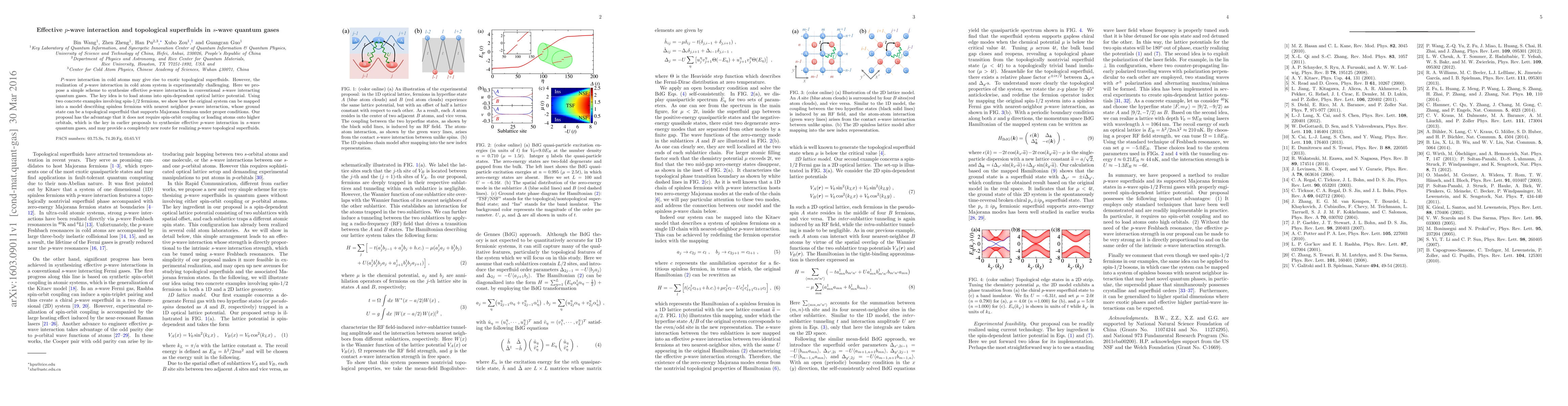 This paper proposes a method to create effective $p$-wave interactions in $s$-wave quantum gases by loading atoms into a spin-dependent optical lattice, enabling the realization of topological superfluids without requiring spin-orbit coupling or higher orbitals. This approach may offer a new route to realizing $p$-wave topological superfluids.
