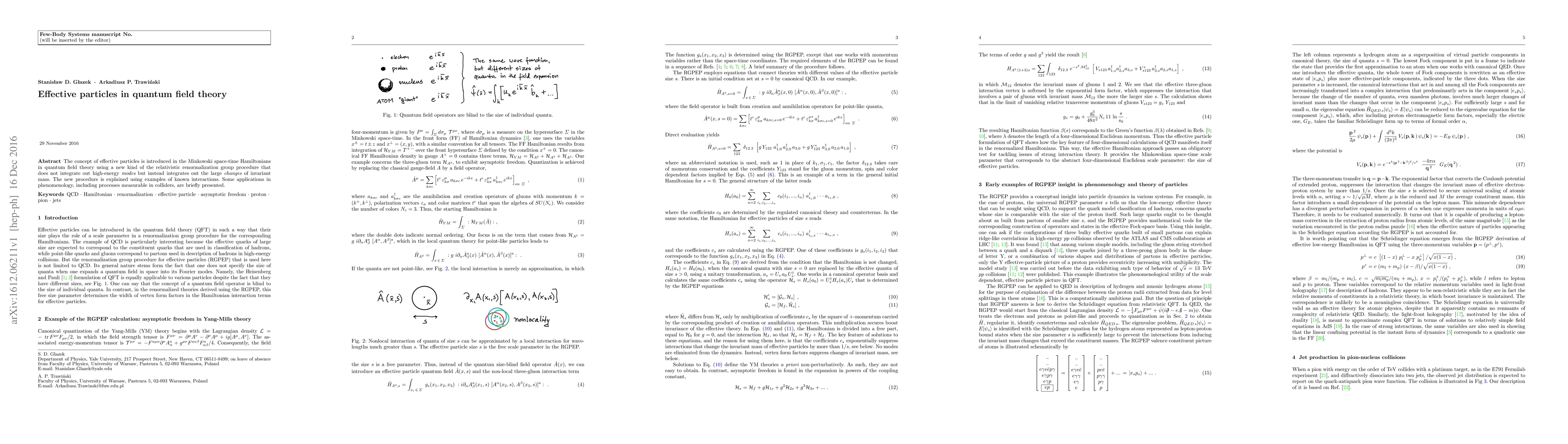 The concept of effective particles is introduced in the Minkowski space-time Hamiltonians in quantum field theory using a new kind of the relativistic renormalization group procedure that does not integrate out high-energy modes but instead integrates out the large changes of invariant mass. The new procedure is explained using examples of known interactions. Some applications in phenomenology, including processes measurable in colliders, are briefly presented.