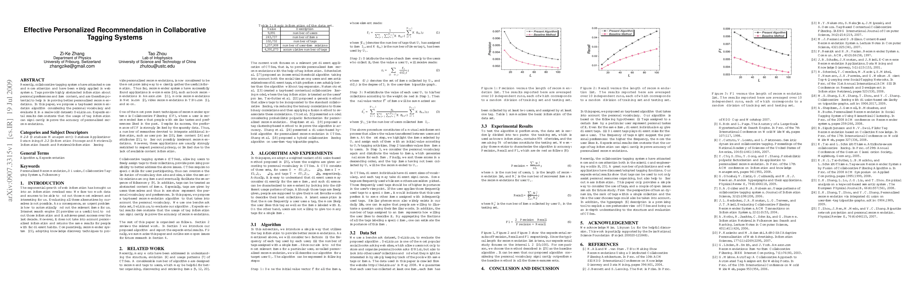 This paper proposes a tag-based recommendation algorithm tailored to individual vocabularies in collaborative tagging systems, tested on Del.icio.us data. Results show that incorporating tag information significantly enhances the accuracy of personalized recommendations.