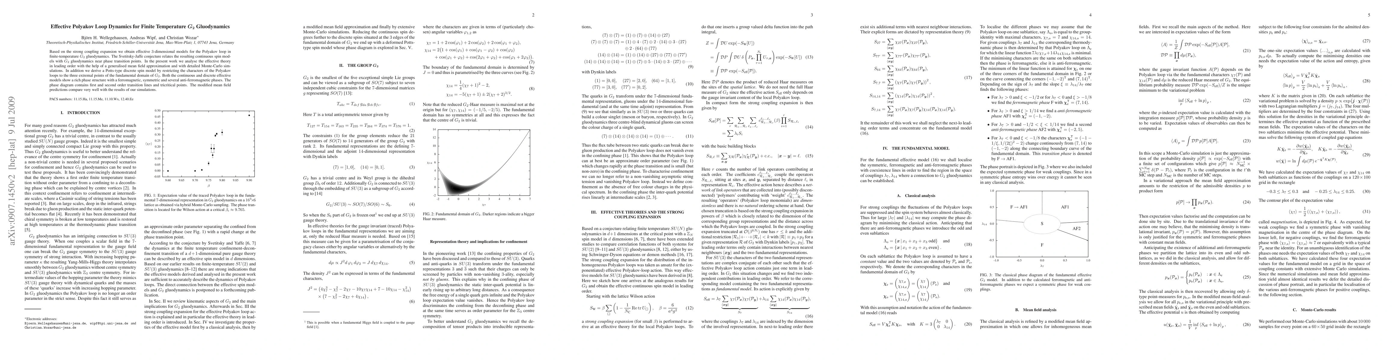 This paper develops effective 3-dimensional models for the Polyakov loop in finite-temperature G_2 gluodynamics, analyzing them using a generalized mean field approximation and Monte-Carlo simulations. It also derives a Potts-type discrete spin model, revealing a complex phase structure with various transition lines and points.