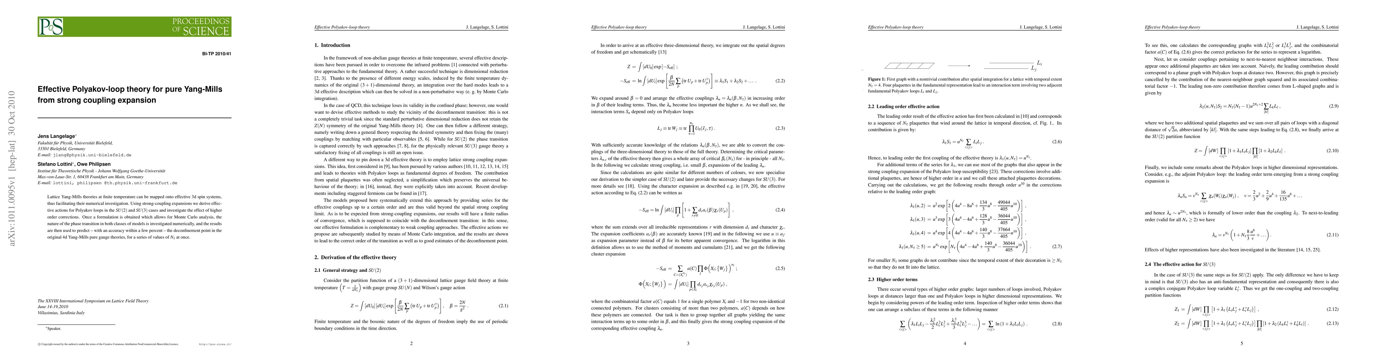 This paper develops an effective 3d spin system from lattice Yang-Mills theories at finite temperature, using strong-coupling expansions to derive actions for Polyakov loops in $SU(2)$ and $SU(3)$. The study predicts the deconfinement point in pure gauge theories with high accuracy by numerically investigating the phase transition in these effective models.