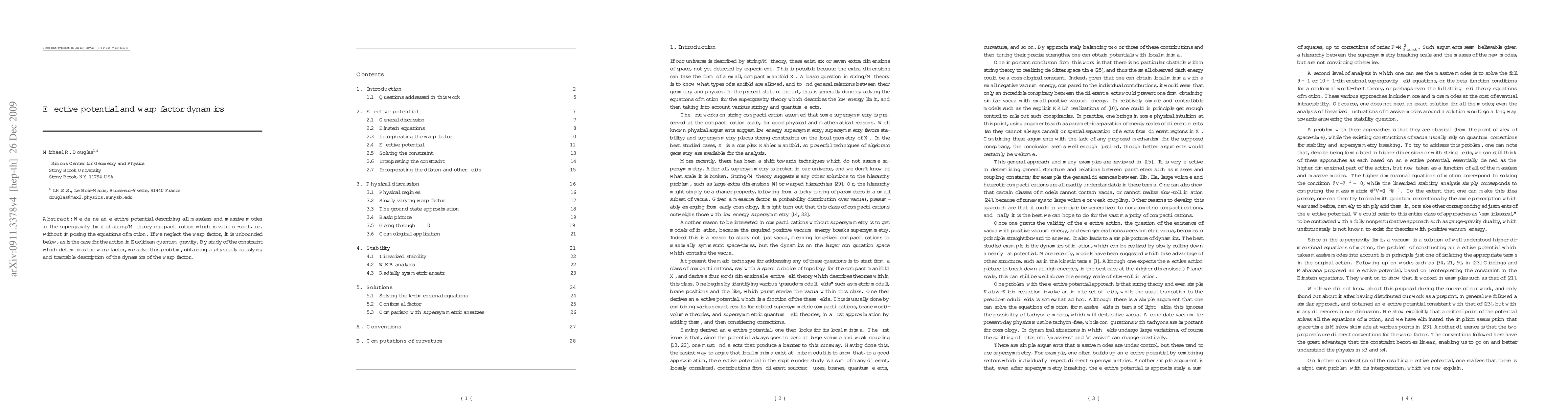 We define an effective potential describing all massless and massive modes in the supergravity limit of string/M theory compactification which is valid off-shell, i.e. without imposing the equations of motion. If we neglect the warp factor, it is unbounded below, as is the case for the action in Euclidean quantum gravity. By study of the constraint which determines the warp factor, we solve this problem, obtaining a physically satisfying and tractable description of the dynamics of the warp factor.