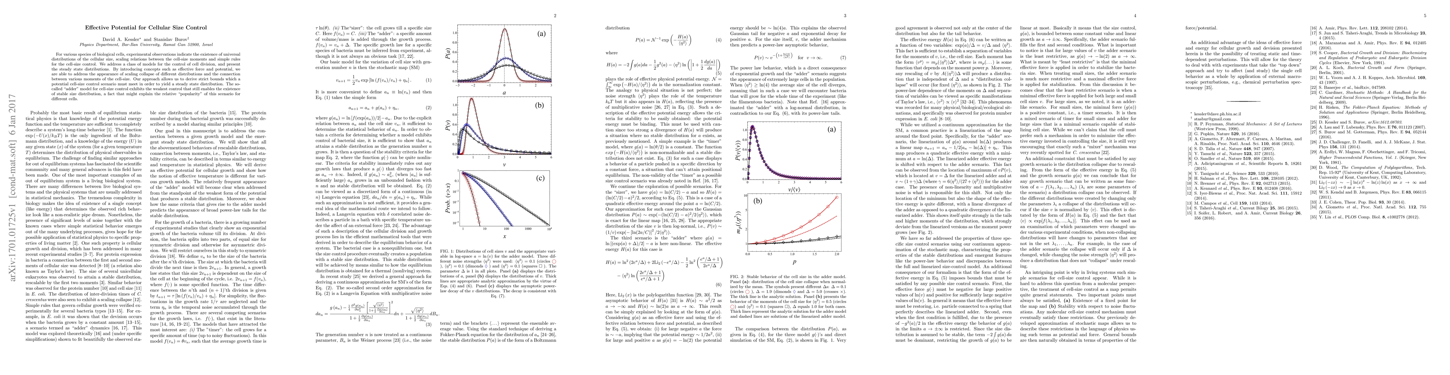 This paper explores models for cellular size control, demonstrating universal distributions and scaling relations in cell size. It introduces effective potential concepts to explain the observed scaling collapse and derives strict bounds for potential cell-size control scenarios, highlighting the "adder" model as the weakest control mechanism that still maintains stable size distribution.