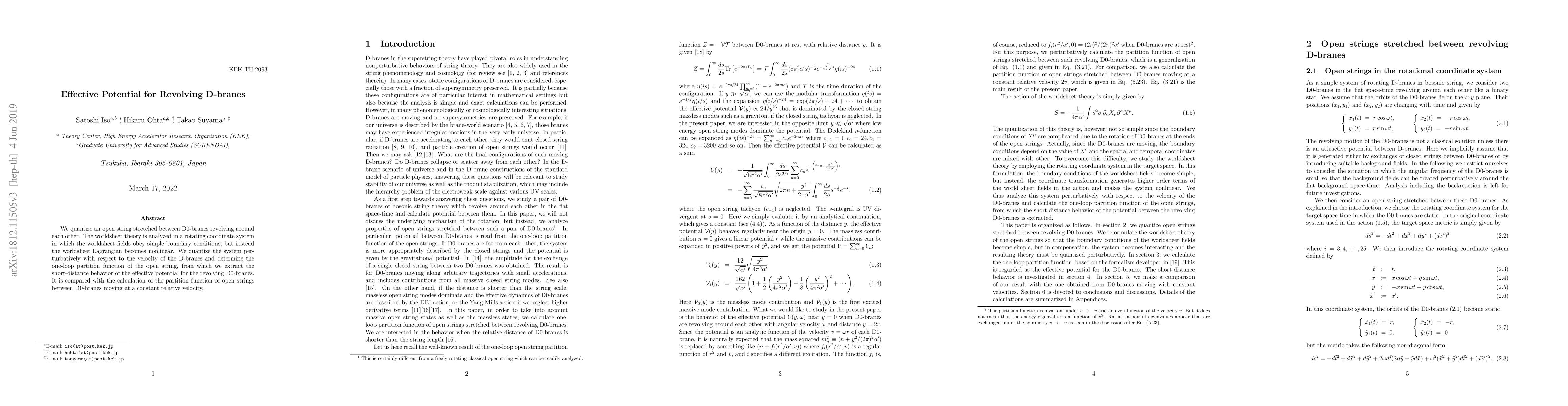 This paper quantizes an open string between revolving D0-branes, determining the effective potential for the branes' motion through a one-loop partition function analysis. The results are compared with those for branes moving at a constant relative velocity.