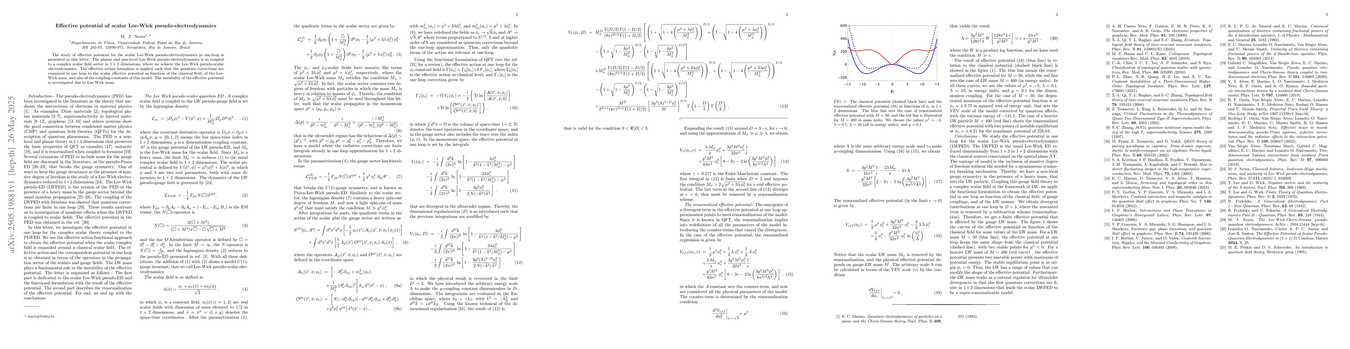 The paper presents a detailed examination of the effective potential for scalar Lee-Wick pseudo-electrodynamics, incorporating quantum corrections in one-loop.