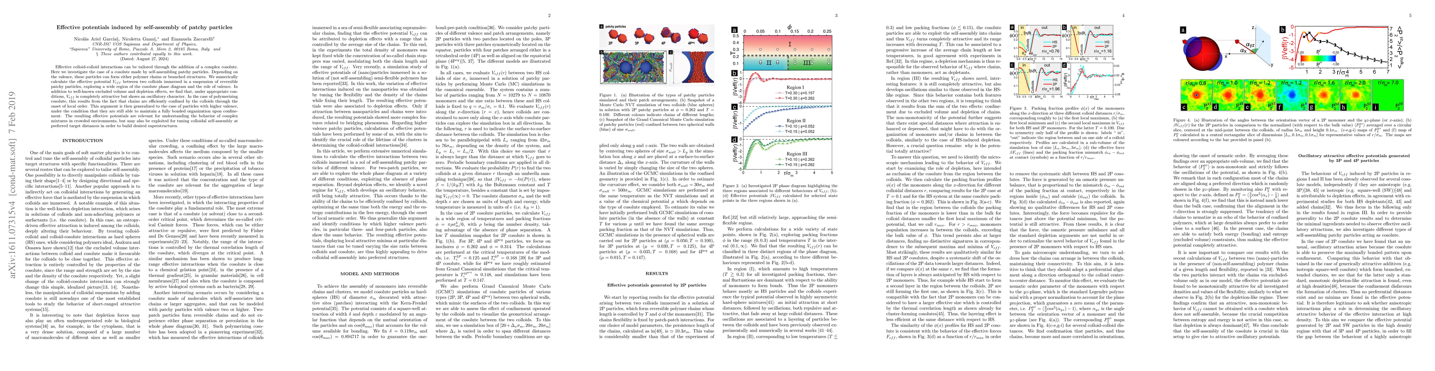 This paper investigates how self-assembling patchy particles, acting as complex cosolutes, can tailor effective colloid-colloid interactions. It finds that under certain conditions, the resulting effective potential between colloids is completely attractive and oscillatory, due to the local order induced by polymerizing cosolutes.