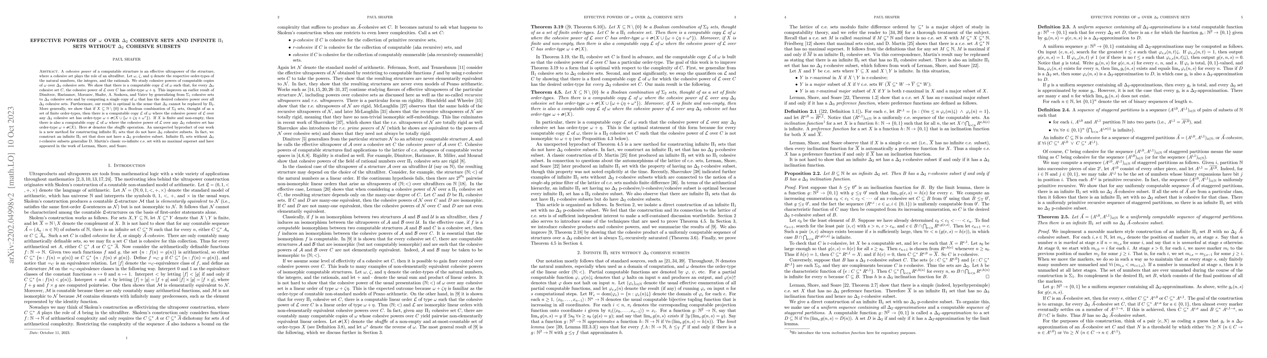 A cohesive power of a computable structure is an effective ultrapower where a cohesive set acts as an ultrafilter. Let $\omega$, $\zeta$, and $\eta$ denote the respective order-types of the natural numbers, the integers, and the rationals. We study cohesive powers of computable copies of $\omega$ over $\Delta_2$ cohesive sets. We show that there is a computable copy $\mathcal{L}$ of $\omega$ such that, for every $\Delta_2$ cohesive set $C$, the cohesive power of $\mathcal{L}$ over $C$ has order-type $\omega + \eta$. This improves an earlier result of Dimitrov, Harizanov, Morozov, Shafer, A. Soskova, and Vatev by generalizing from $\Sigma_1$ cohesive sets to $\Delta_2$ cohesive sets and by computing a single copy of $\omega$ that has the desired cohesive power over all $\Delta_2$ cohesive sets. Furthermore, our result is optimal in the sense that $\Delta_2$ cannot be replaced by $\Pi_2$. More generally, we show that if $X \subseteq \mathbb{N} \setminus \{0\}$ is a Boolean combination of $\Sigma_2$ sets, thought of as a set of finite order-types, then there is a computable copy $\mathcal{L}$ of $\omega$ where the cohesive power of $\mathcal{L}$ over any $\Delta_2$ cohesive set has order-type $\omega + \sigma(X \cup \{\omega + \zeta\eta + \omega^*\})$. If $X$ is finite and non-empty, then there is also a computable copy $\mathcal{L}$ of $\omega$ where the cohesive power of $\mathcal{L}$ over any $\Delta_2$ cohesive set has order-type $\omega + \sigma(X)$. An unexpected byproduct of our work is a new method for constructing infinite $\Pi_1$ sets that do not have $\Delta_2$ cohesive subsets. In fact, we construct an infinite $\Pi_1$ set that does not have a $\Delta_2$ p-cohesive subset. Infinite $\Pi_1$ sets without $\Delta_2$ r-cohesive subsets generalize D. Martin's classic co-infinite c.e. set with no maximal superset and have appeared in the work of Lerman, Shore, and Soare.