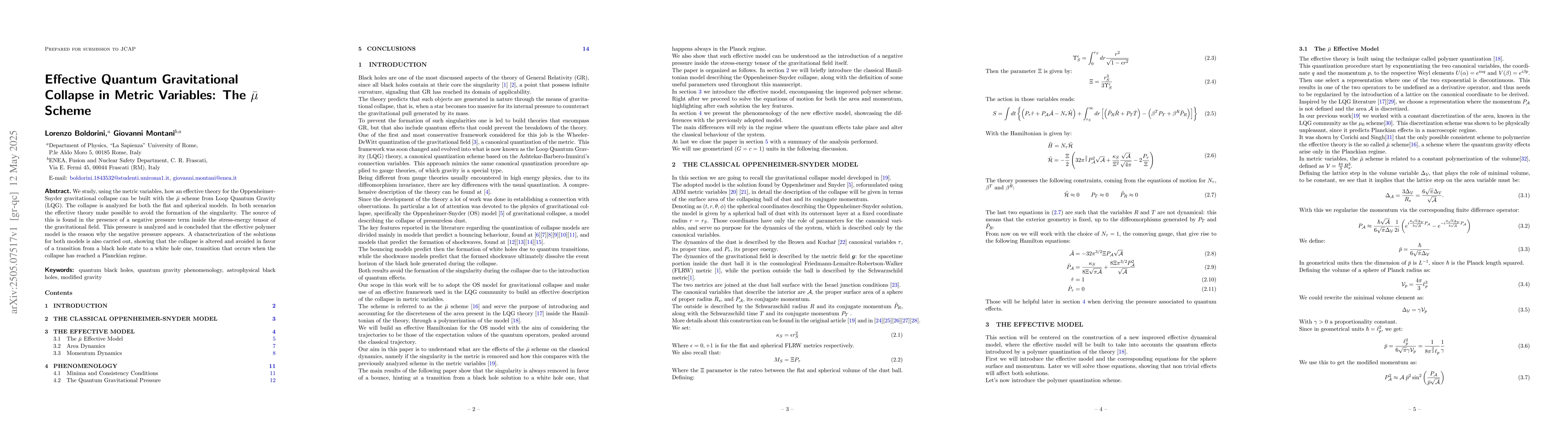 Introduction of the $\bar{\mu}$ scheme in LQG to effectively describe gravitational collapse and avoid singularities.
