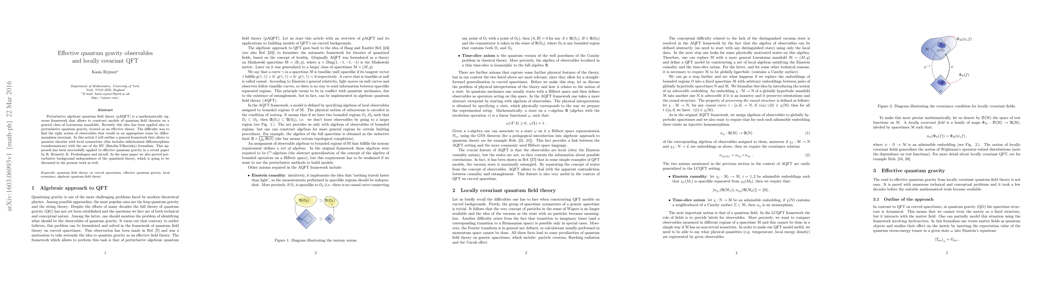 This paper outlines a rigorous mathematical framework using perturbative algebraic quantum field theory (pAQFT) and the BV formalism to construct diffeomorphism invariant observables for effective quantum gravity. It also discusses the perturbative background independence of the quantized theory, building on previous work by the authors.