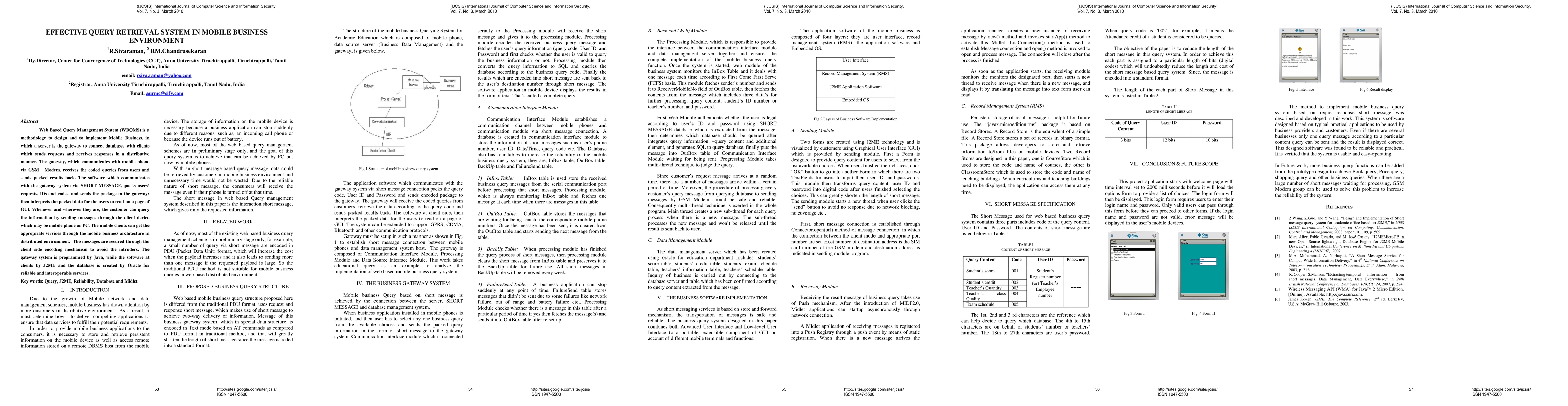 Web Based Query Management System (WBQMS) is a methodology to design and to implement Mobile Business, in which a server is the gateway to connect databases with clients which sends requests and receives responses in a distributive manner. The gateway, which communicates with mobile phone via GSM Modem, receives the coded queries from users and sends packed results back. The software which communicates with the gateway system via SHORT MESSAGE, packs users' requests, IDs and codes, and sends the package to the gateway; then interprets the packed data for the users to read on a page of GUI. Whenever and wherever they are, the customer can query the information by sending messages through the client device which may be mobile phone or PC. The mobile clients can get the appropriate services through the mobile business architecture in distributed environment. The messages are secured through the client side encoding mechanism to avoid the intruders. The gateway system is programmed by Java, while the software at clients by J2ME and the database is created by Oracle for reliable and interoperable services.