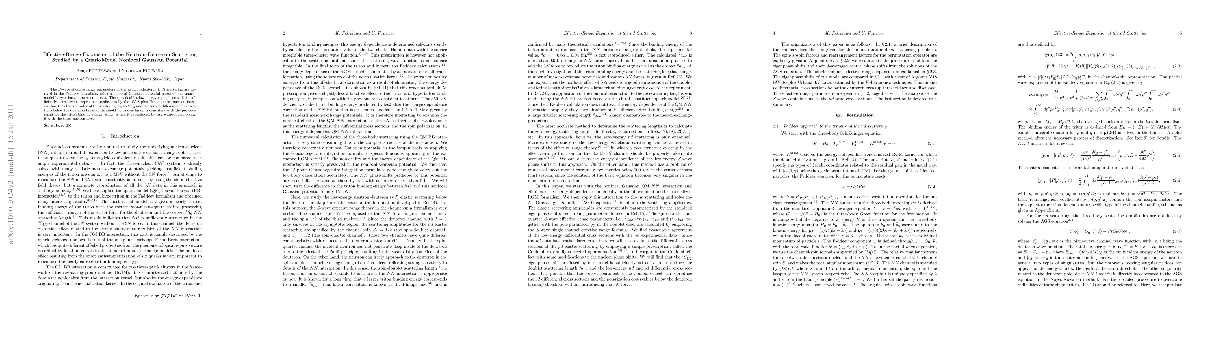 This paper derives the S-wave effective range parameters for neutron-deuteron scattering using a nonlocal Gaussian potential from a quark-model interaction, achieving results comparable to those from the AV18 plus Urbana three-nucleon force, and confirming previous findings for triton binding energy.