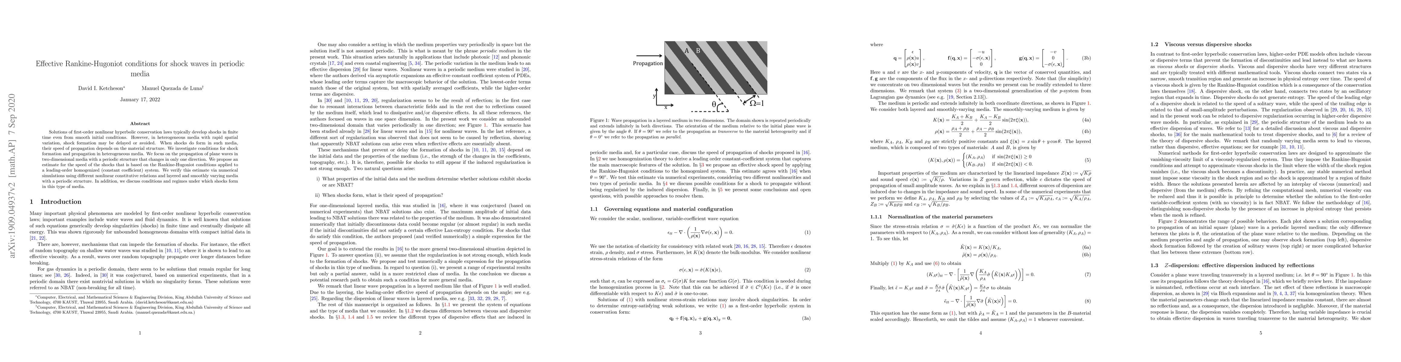 This paper explores the conditions for shock formation and propagation in heterogeneous, periodic media, proposing an estimate for shock speed based on homogenized Rankine-Hugoniot conditions. Numerical simulations validate this estimate across various nonlinear constitutive relations and media types.