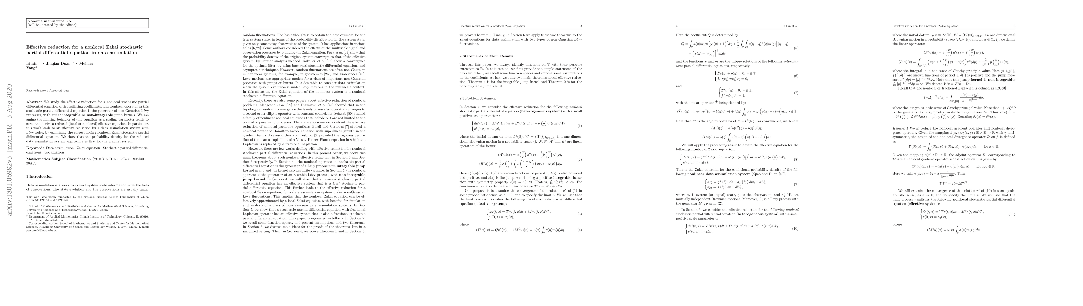 We study the effective reduction for a nonlocal stochastic partial differential equation with oscillating coefficients. The nonlocal operator in this stochastic partial differential equation is the generator of non-Gaussian L\'{e}vy processes, with either \textbf{integrable} or \textbf{non-integrable} jump kernels. We examine the limiting behavior of this equation as a scaling parameter tends to zero, and derive a reduced (local or nonlocal) effective equation. In particular, this work leads to an effective reduction for a data assimilation system with L\'{e}vy noise, by examining the corresponding nonlocal Zakai stochastic partial differential equation. We show that the probability density for the reduced data assimilation system approximates that for the original system.