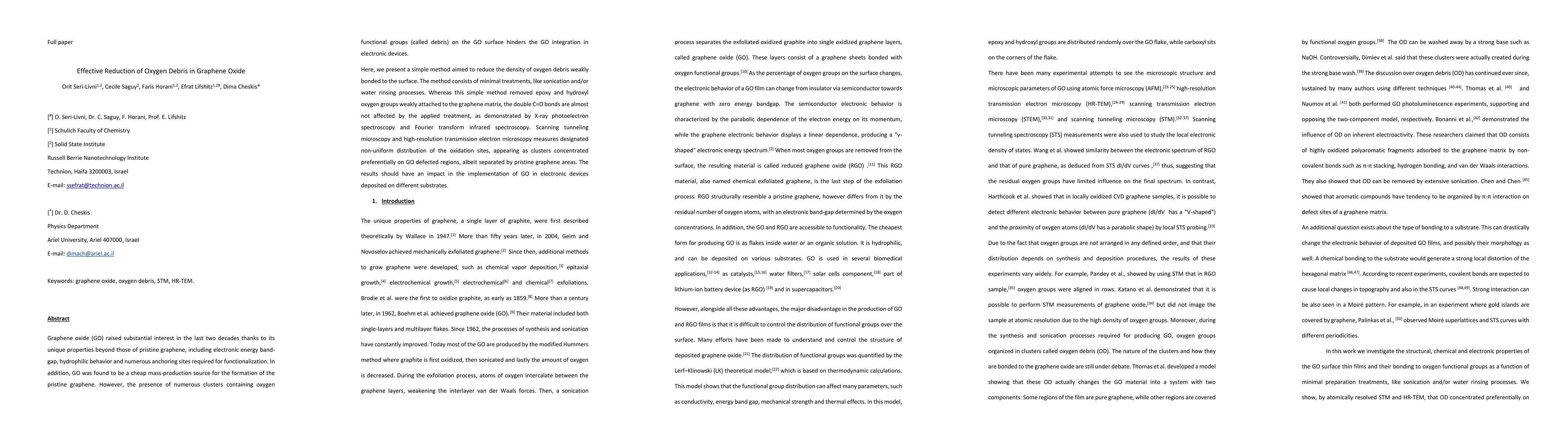 Researchers developed a simple method to reduce oxygen debris on graphene oxide surfaces using sonication and water rinsing, improving its integration in electronic devices.