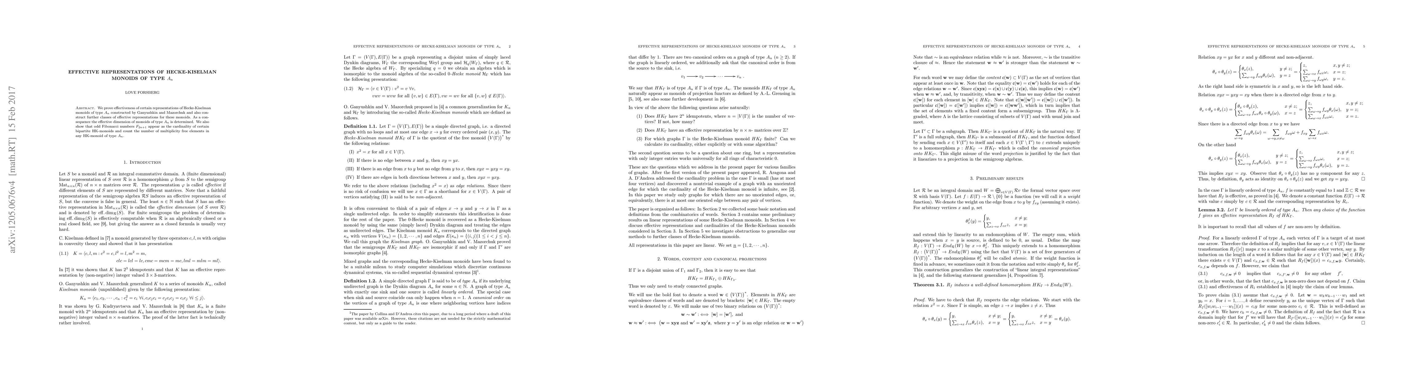 This paper proves the effectiveness of representations for Hecke-Kiselman monoids of type A, constructed by Ganyushkin and Mazorchuk, and introduces additional classes of effective representations. It determines the effective dimension of these monoids and reveals that odd Fibonacci numbers correspond to the cardinality of specific bipartite HK-monoids.