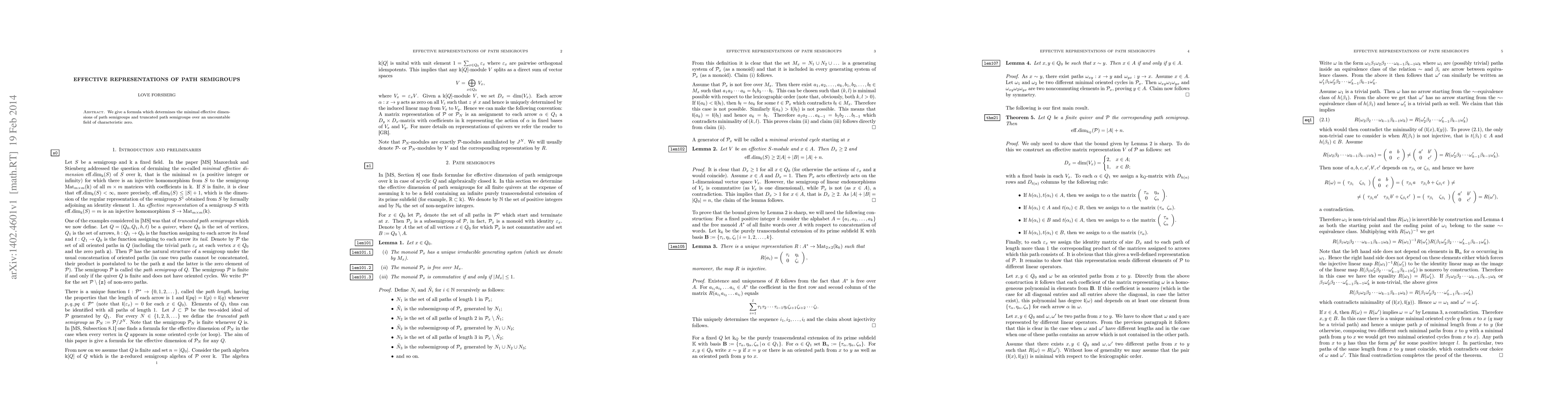 Summary: This paper presents a formula to determine the minimal effective dimensions of path semigroups and truncated path semigroups over an uncountable field of characteristic zero, providing a significant advancement in the representation theory of these algebraic structures.