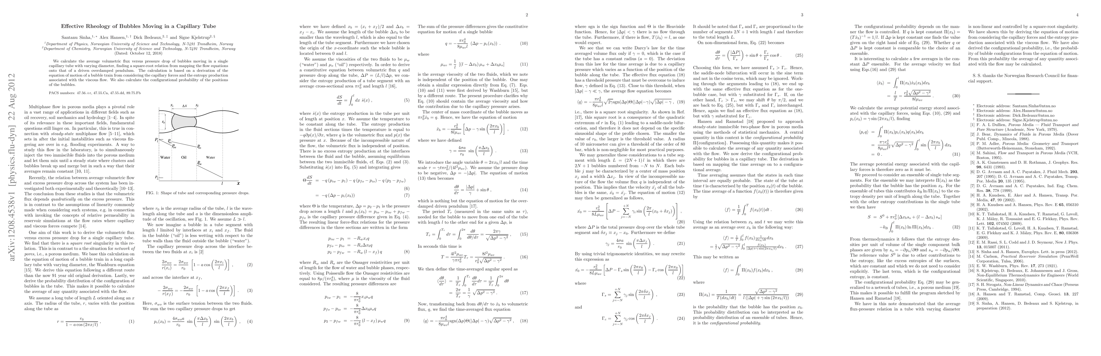 This study derives the average volumetric flux and pressure drop for bubble movement in capillary tubes, revealing a square-root relationship. The analysis is grounded in the equation of motion for bubble trains, incorporating capillary forces and viscous flow entropy production.