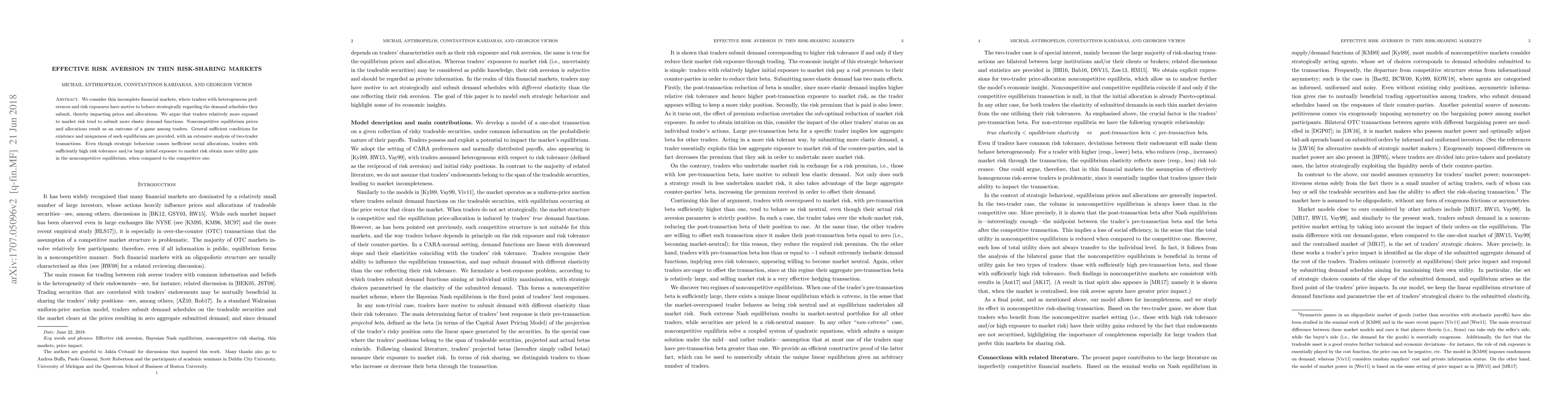 Research shows that in thin risk-sharing markets, traders with high risk tolerance benefit from non-competitive equilibrium prices and allocations, even if it leads to inefficient social outcomes.