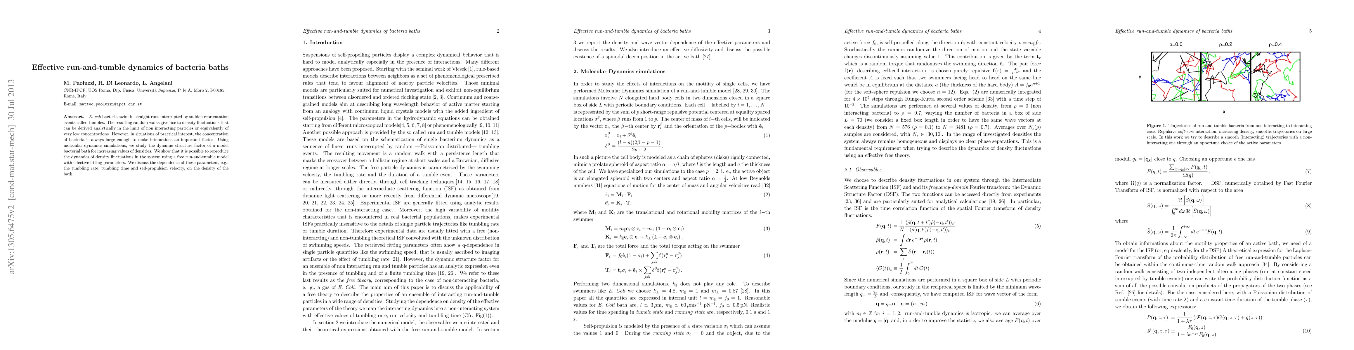 Molecular dynamics simulations were used to study the dynamic structure factor of a model bacterial bath for increasing densities, comparing the results with a free run-and-tumble model with effective fitting parameters.