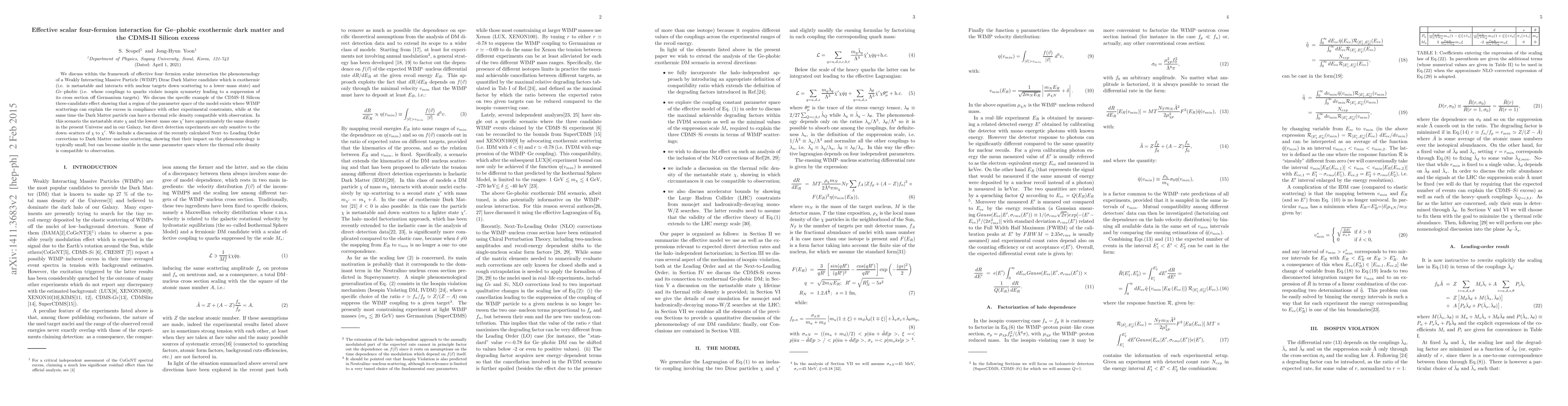 We discuss within the framework of effective four-fermion scalar interaction the phenomenology of a Weakly Interacting Massive Particle (WIMP) Dirac Dark Matter candidate which is exothermic (i.e. is metastable and interacts with nuclear targets down-scattering to a lower-mass state) and $Ge$-phobic (i.e. whose couplings to quarks violate isospin symmetry leading to a suppression of its cross section off Germanium targets). We discuss the specific example of the CDMS-II Silicon three-candidate effect showing that a region of the parameter space of the model exists where WIMP scatterings can explain the excess in compliance with other experimental constraints, while at the same time the Dark Matter particle can have a thermal relic density compatible with observation. In this scenario the metastable state $\chi$ and the lowest-mass one $\chi^{\prime}$ have approximately the same density in the present Universe and in our Galaxy, but direct detection experiments are only sensitive to the down-scatters of $\chi$ to $\chi^{\prime}$. We include a discussion of the recently calculated Next-to-Leading Order corrections to Dark Matter-nucleus scattering, showing that their impact on the phenomenology is typically small, but can become sizable in the same parameter space where the thermal relic density is compatible to observation.
